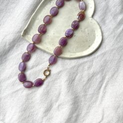 De kralen zijn geregen op nylon gecoat roestvrij staaldraad. Deze zijn stevig bevestigd met knijpkralen en afgewerkt met mooie, goudkleurige knijpkraalverbergers.