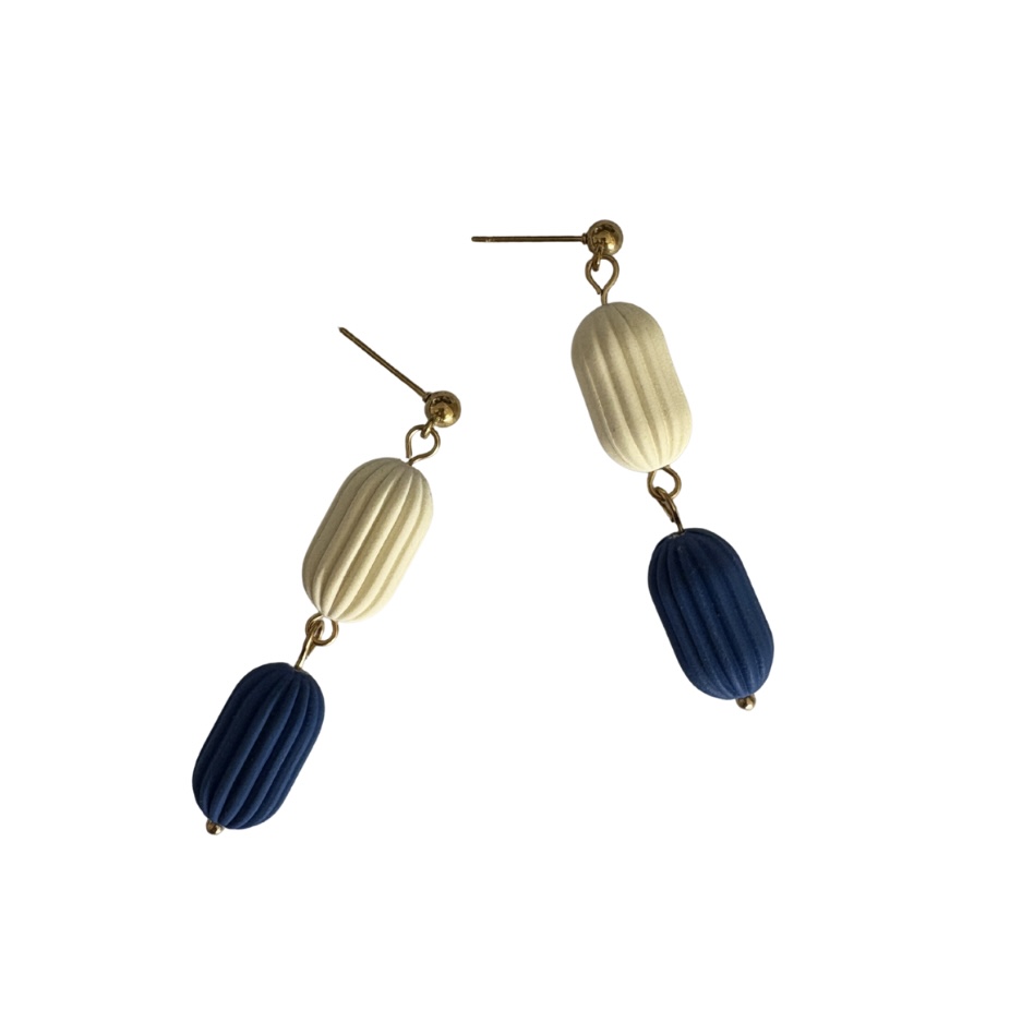 Oorbellen Naomi in de kleurcombinatie crème/blauw en heeft een lengte van circa 50 mm.